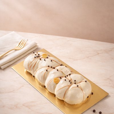 White Chocolate egg with victoria cake, strawberry filling, strawberry mousse